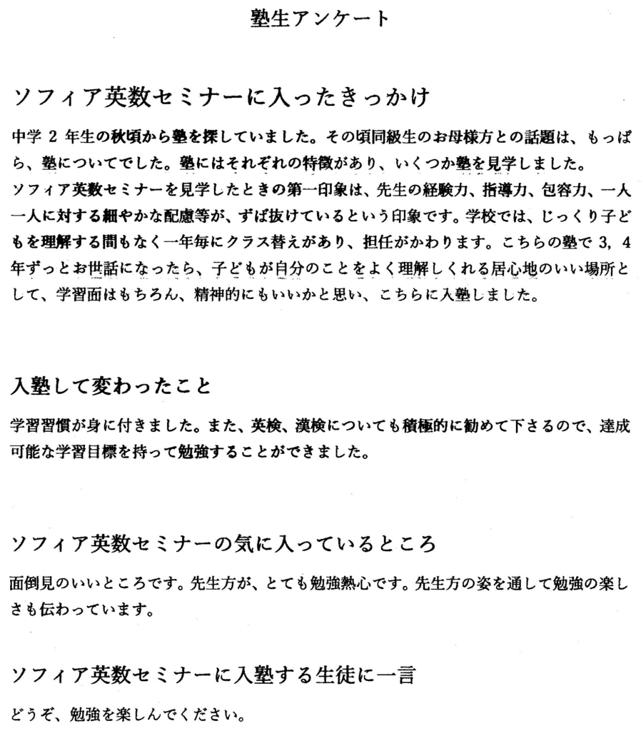 生徒・保護者様の声
