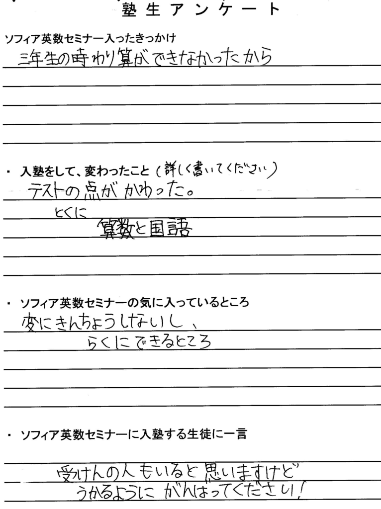 「算数国語が凄く上がった」
